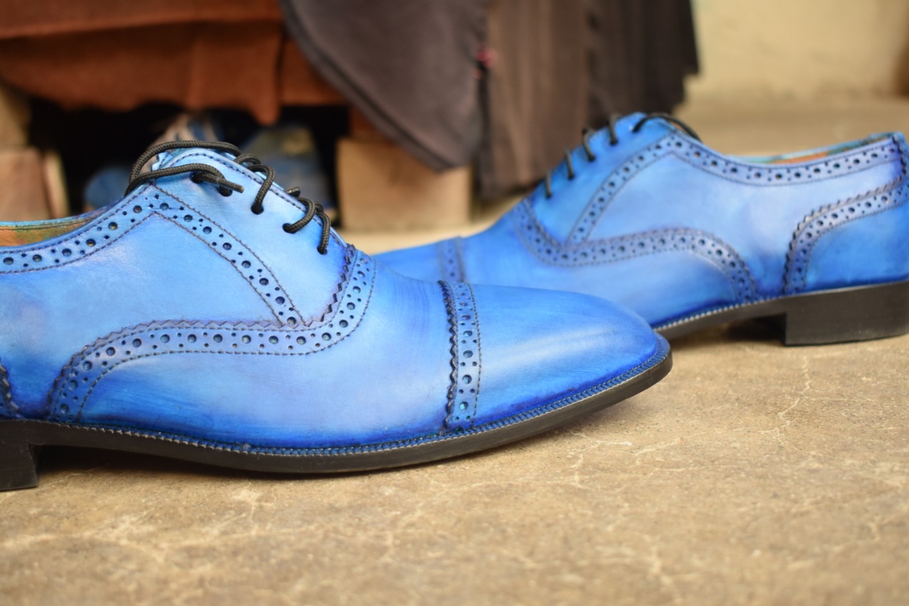 Best Fashion Oxfords Blue Cap Toe Style Leather Lace Up Shoes