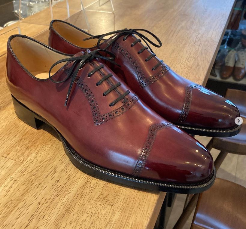 Men's Hand Stitch Burgundy Oxfords Leather Shoes