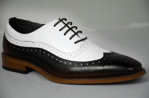 Classic Oxfords Black White Contrast Wingtip Brogue Lace Up Wedding Shoes