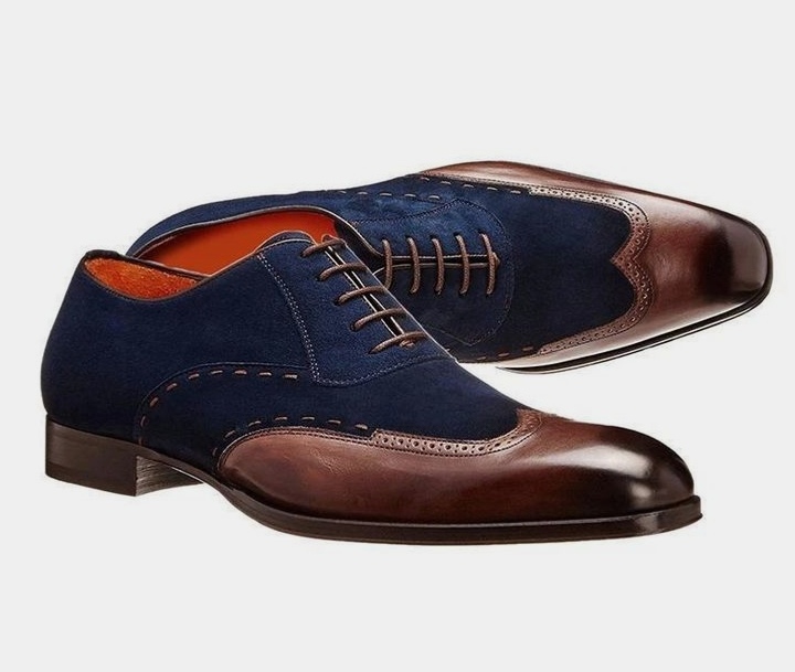 Luxury Two Tone Handmade Wingtip Leather Suede Shoes
