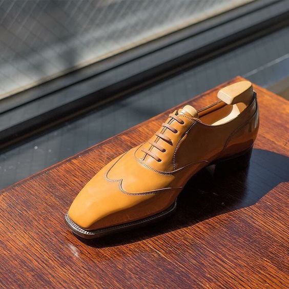 Mens Hand Stitch Customize On Demand Tan Leather Wingtip Formal Lace Up Dress Shoes