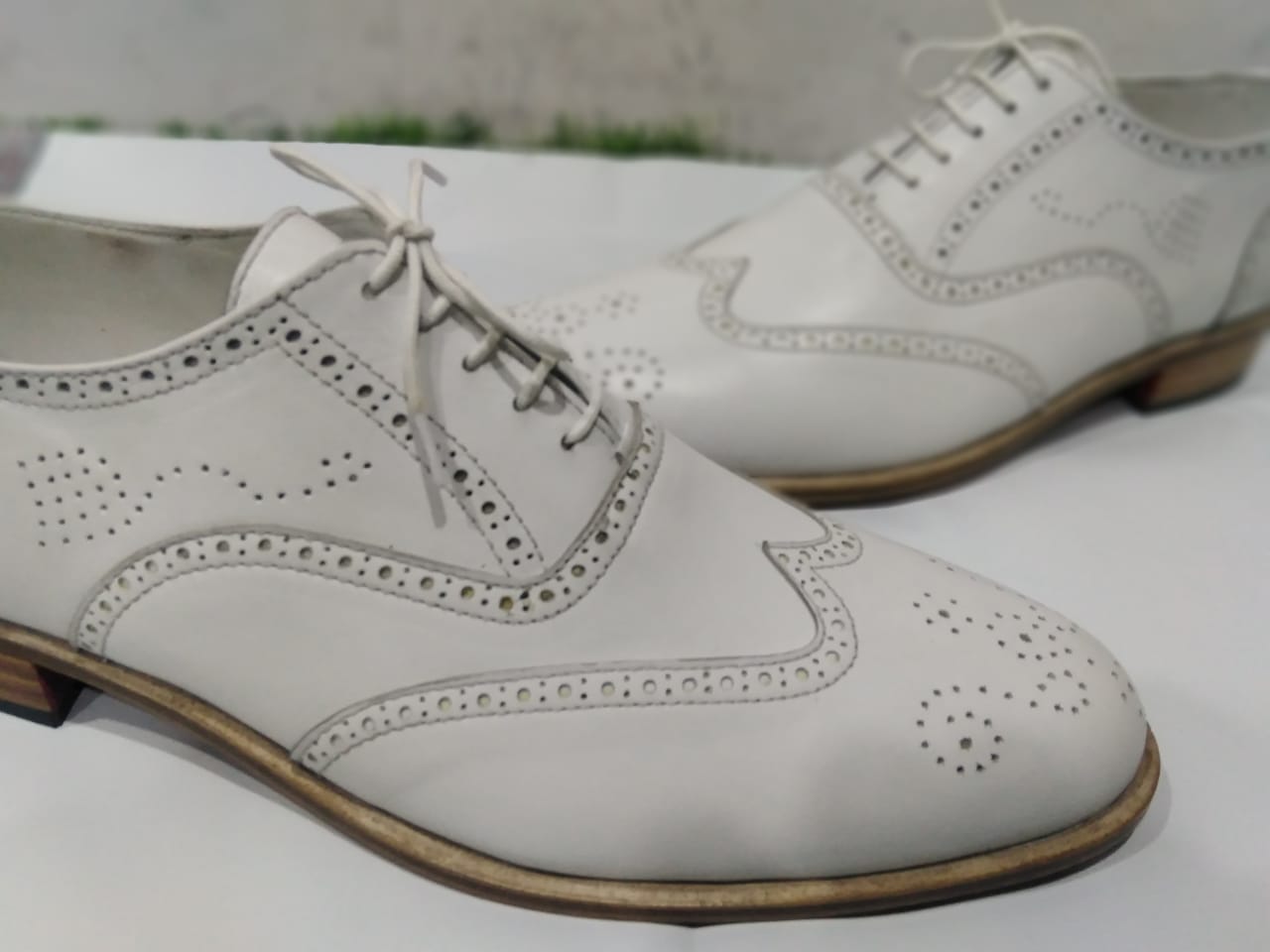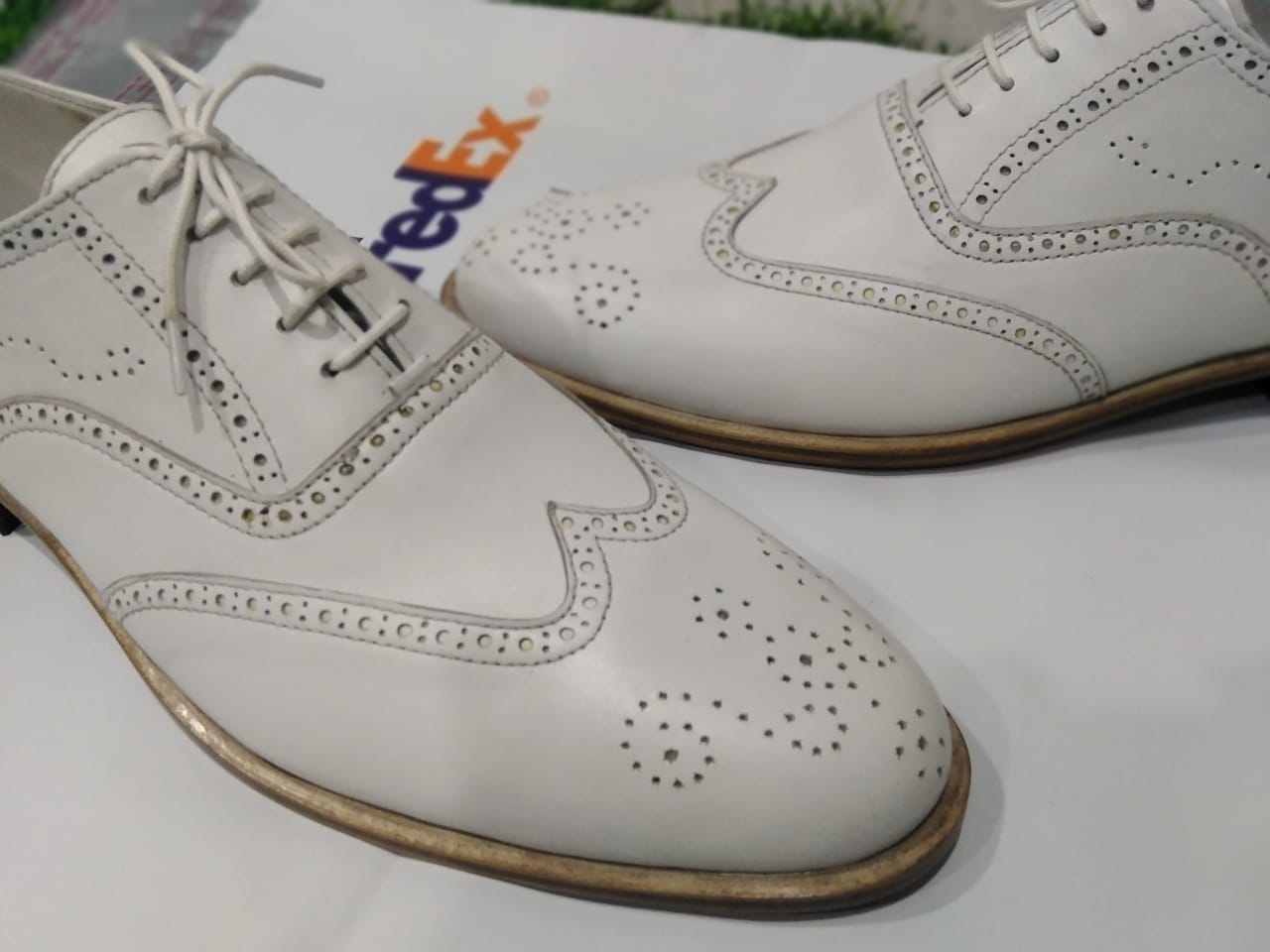 Trendy Men's Handmade Oxfords White Wingtip Brogue Lace Up Leather Shoes