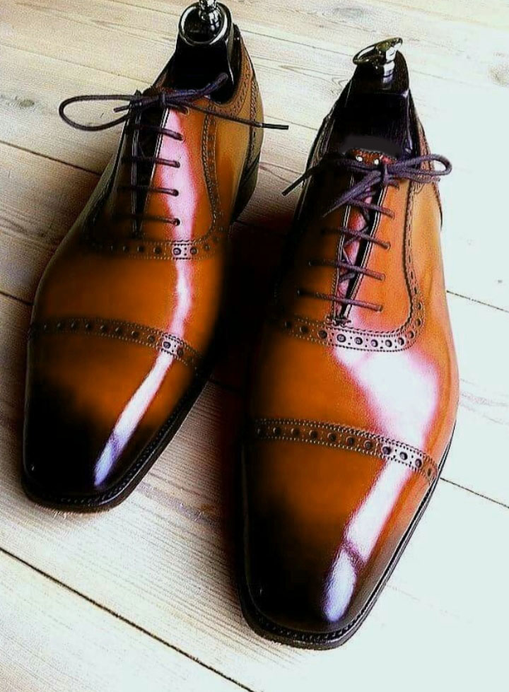 New Handmade Men Two Tone Leather Shoes