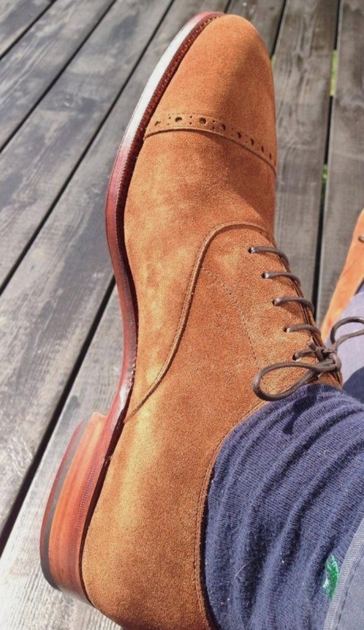 Decent Handmade Oxfords Brown Cap Toe Suede Lace Up Formal Men's Shoes