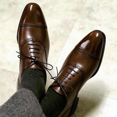 Gentlemen Limited Dark Brown Cap Toe Leather Lace up Wedding Shoes