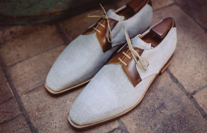 Customize Men Handmade Narrow Toe Wedding Wear Great Tweed Dress Shoes