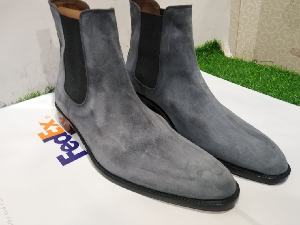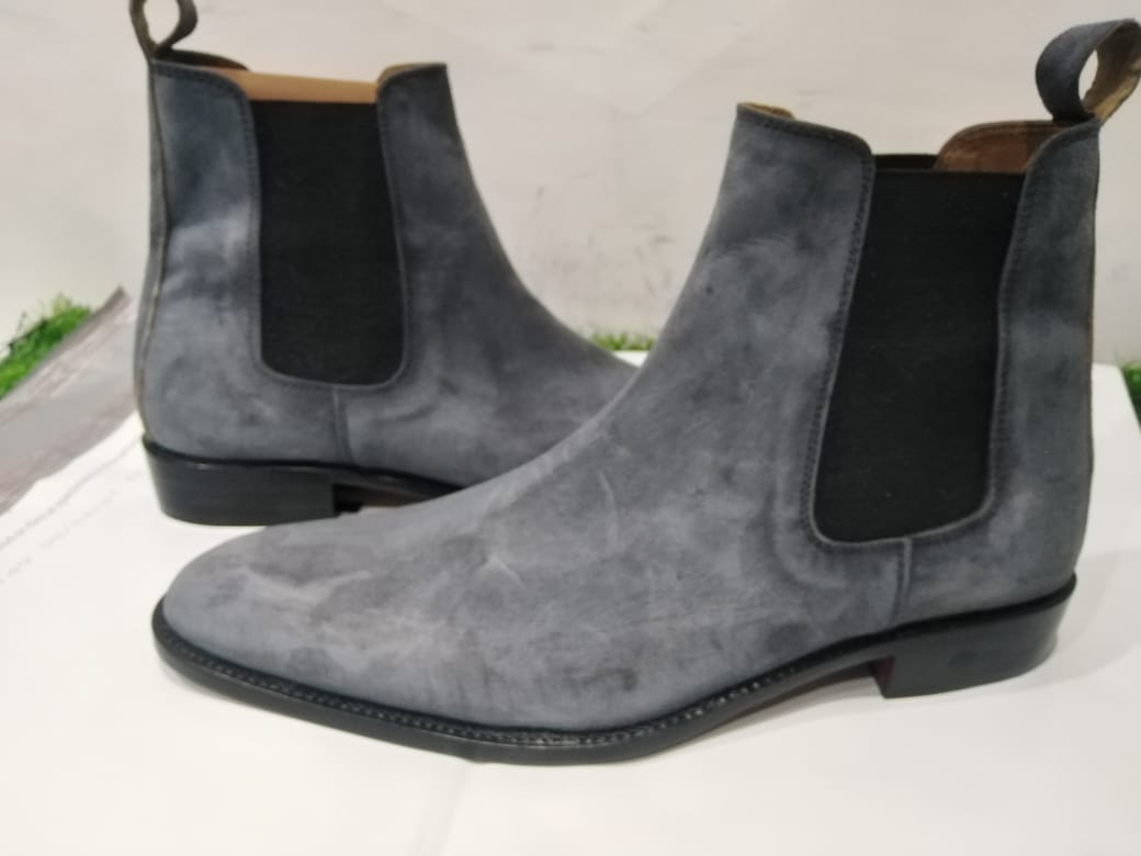 Nice Finish Grey Suede Ankle High Chelsea Dress Handmade Boot