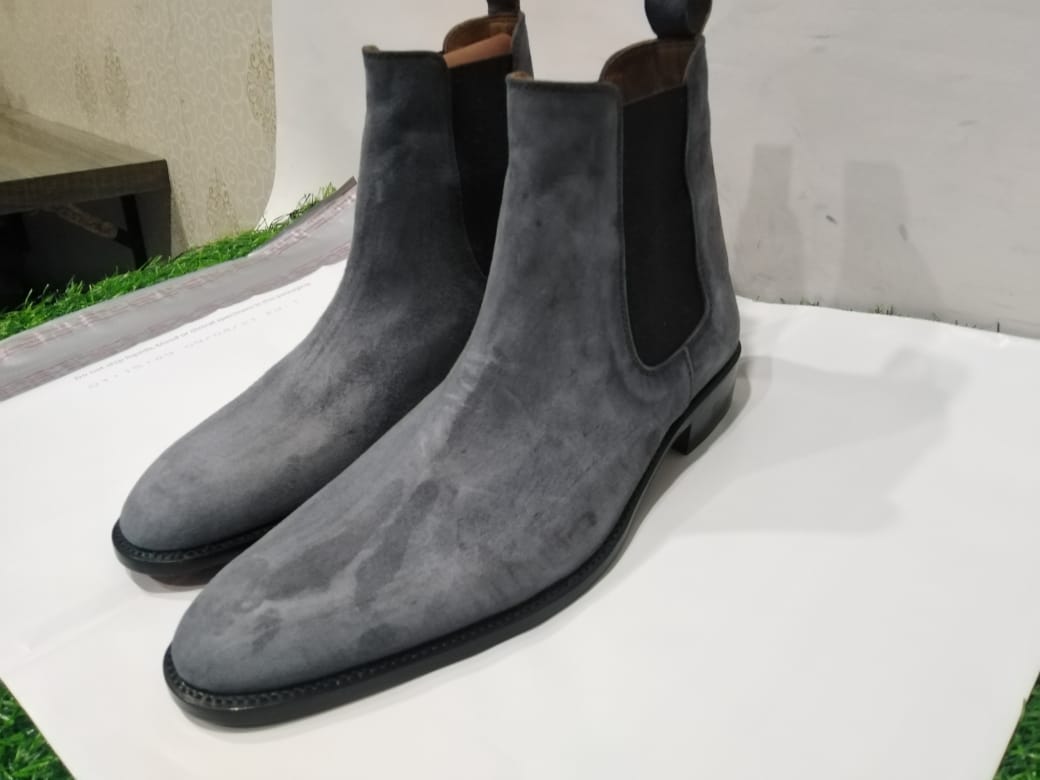 Nice Finish Grey Suede Ankle High Chelsea Dress Handmade Boot Shoe Structure Are Divided Into Following Parts: