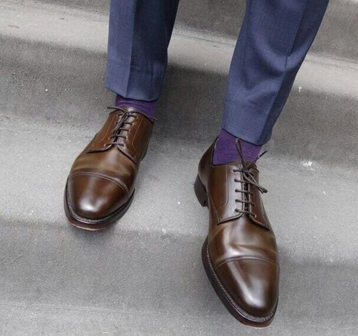 Men Classic Hand Made Rust Brown Leather Cap Toe Dress Formal Shoes