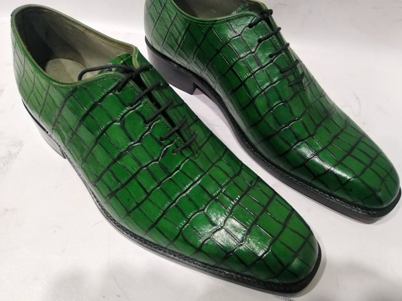 Classic Men's Hand Made Green Alligator Skin Leather Party Wear Lace Up Shoes