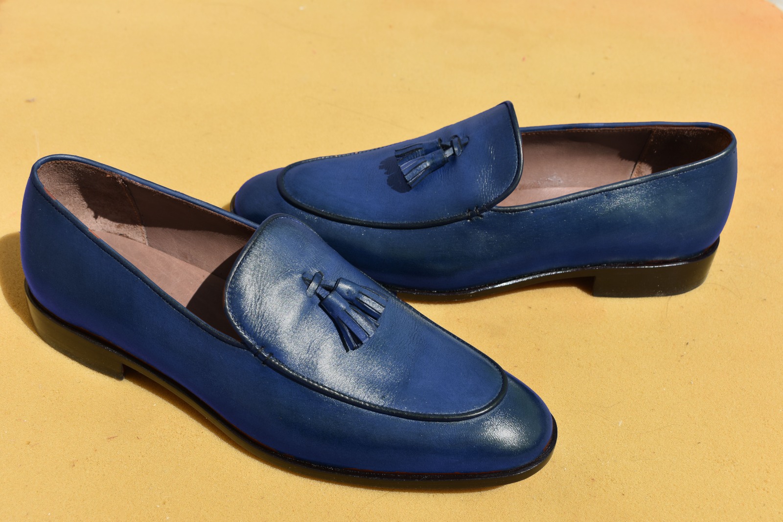 Luxury Men's Hand Stitch Blue Shoes, Tassels Loafer Leather Formal Shoes