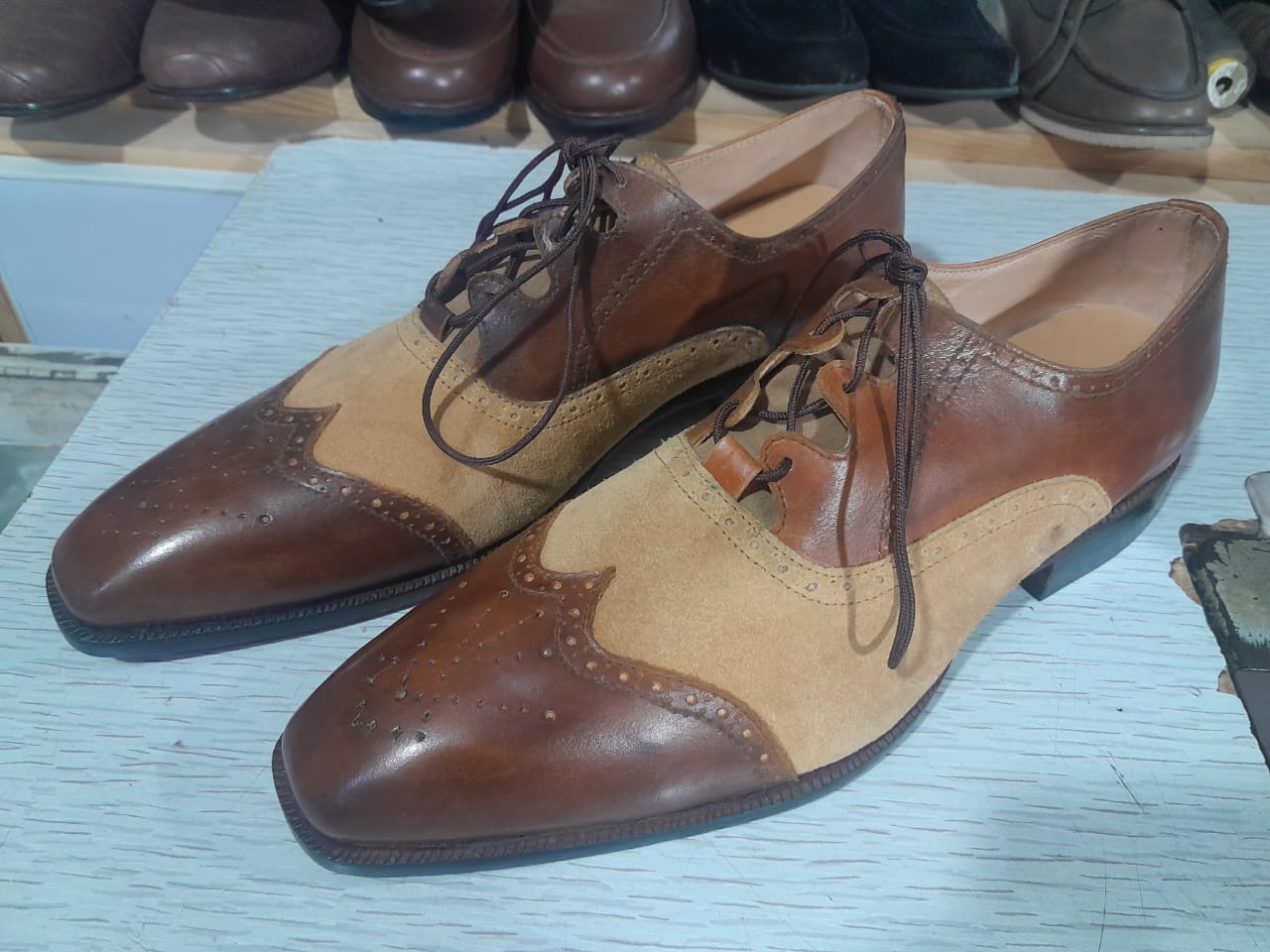 Handmade Italian Structure Camel Brown Contrast Wingtip Shoes Dress Shoes Collection For Men