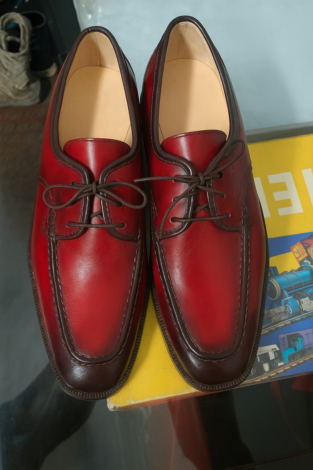 Handmade Red Leather Twotone Contrast Formal Lace Up Dress Shoes