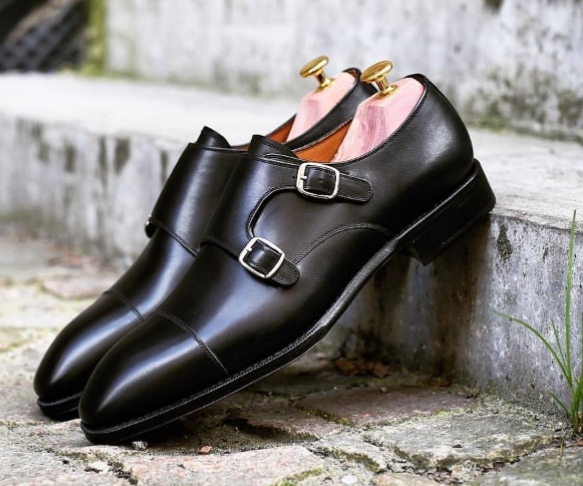 Limited Edition Black Cap Toe Double Monk Strap Genuine Leather Office Shoes