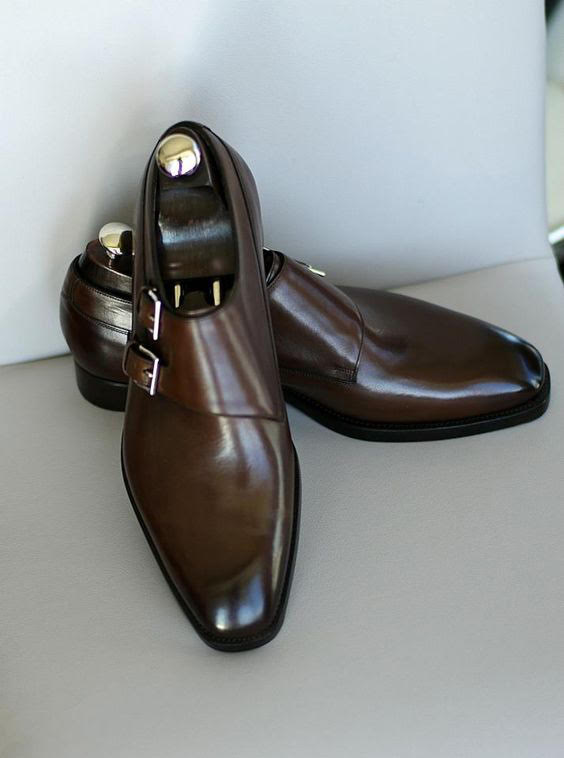Men's Chocolate Brown Cap Toe Handmade Double Monk Strap Genuine Leather Office Shoes