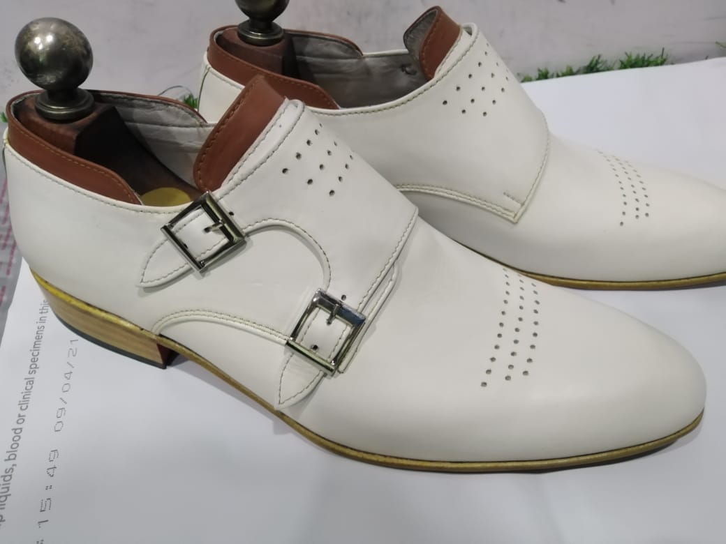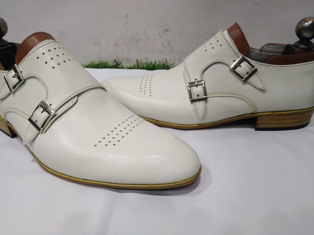 Best Dress Wear Men's Cow White Double Monk Strap Leather Formal Wear Shoes