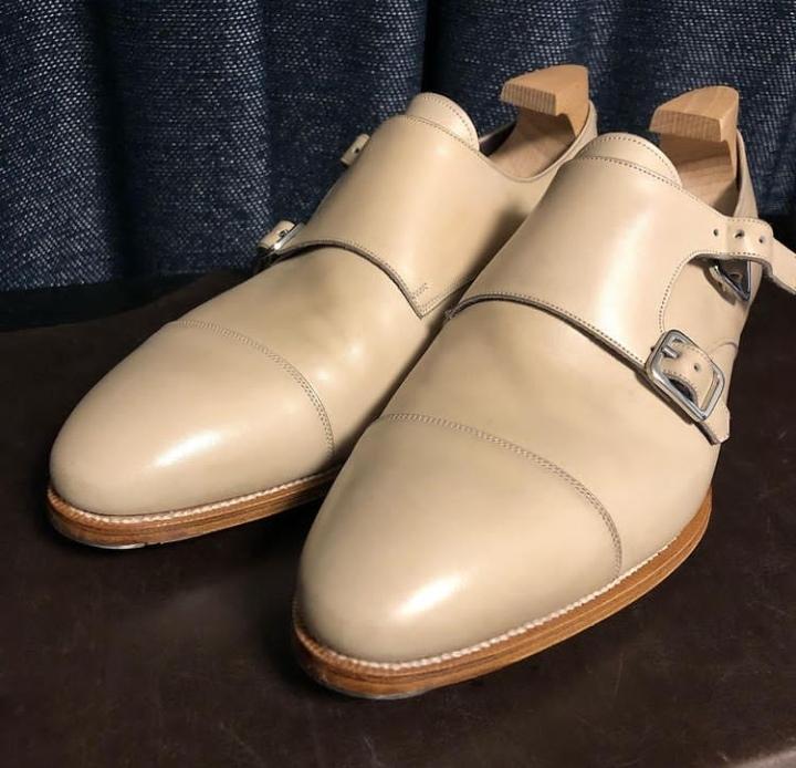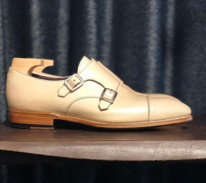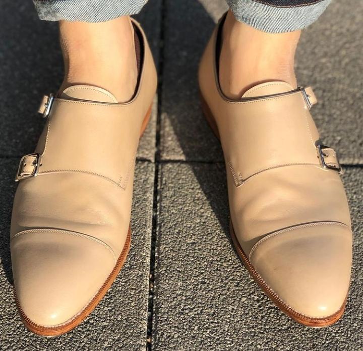 Handmade Men's Wedding SEASON Customized CREAM Double Monk Dress Shoes