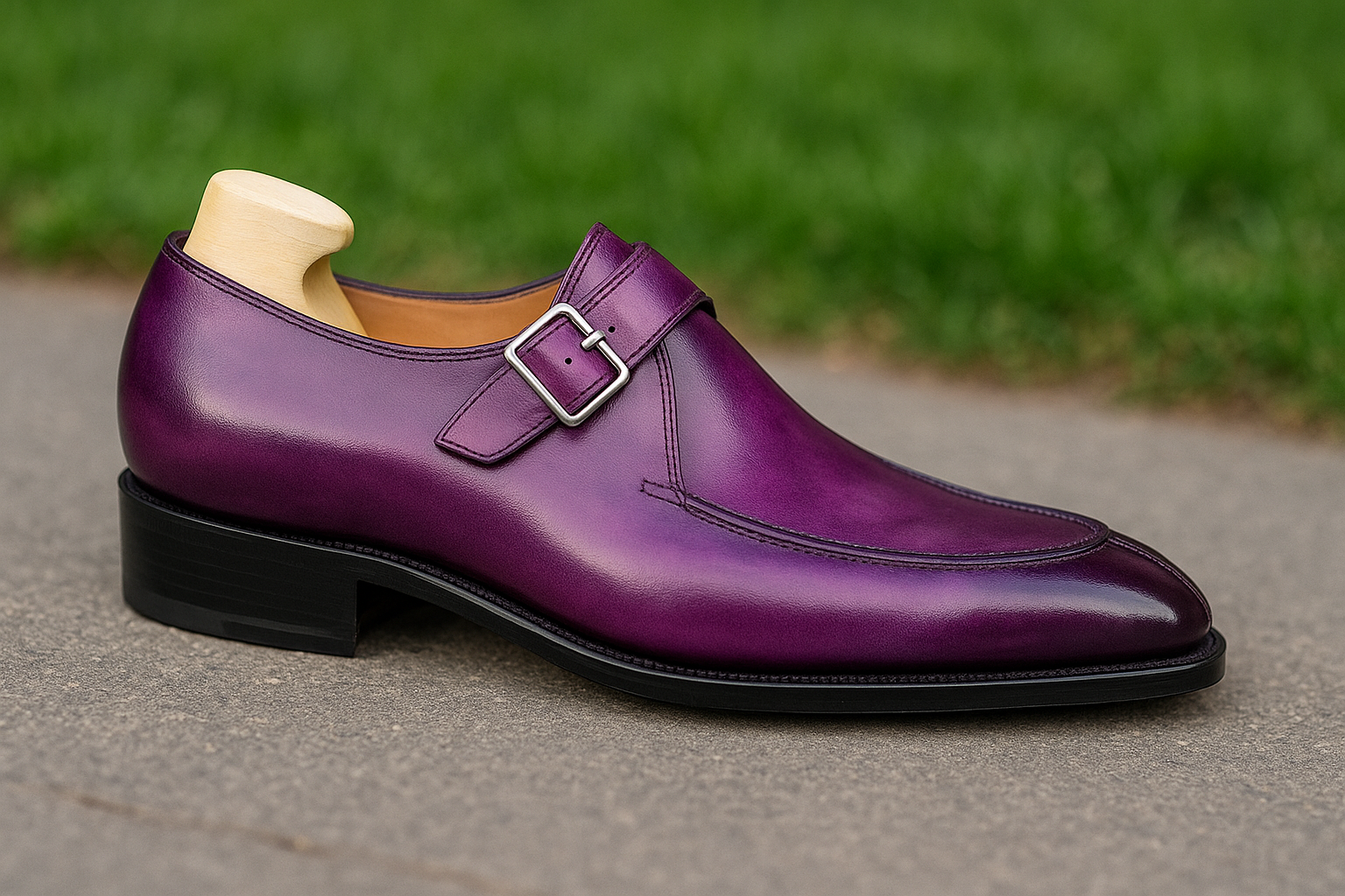 Handmade Purple Leather Polishign Single Monk Strap Formal Shoes Ideal For Weddings And Formal Wear