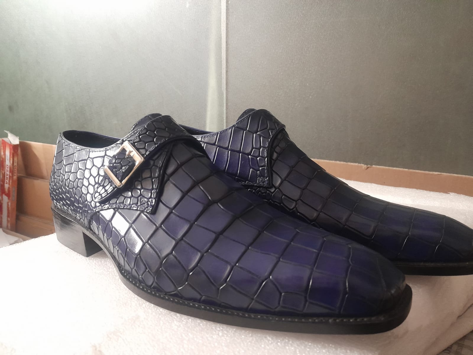 Hot Sale Christmas Alligator Skin Navy Blue Monk Strap Handmade Shoes