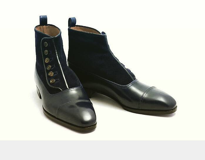 Black Leather Dress Ankle High Button Fastening Handmade Boot