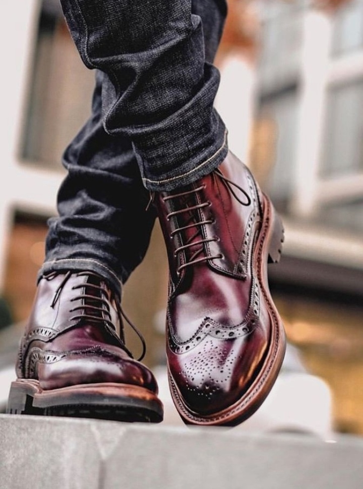 Handmade Burgundy Leather Wingtip Lace Up Military Boot For Gentlemen