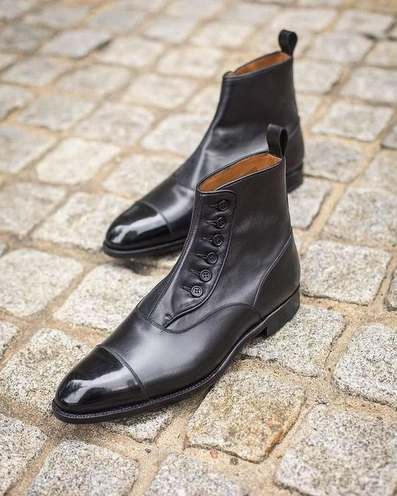 Handmade New Black Genuine Leather Cap Toe Formal Button Boot
