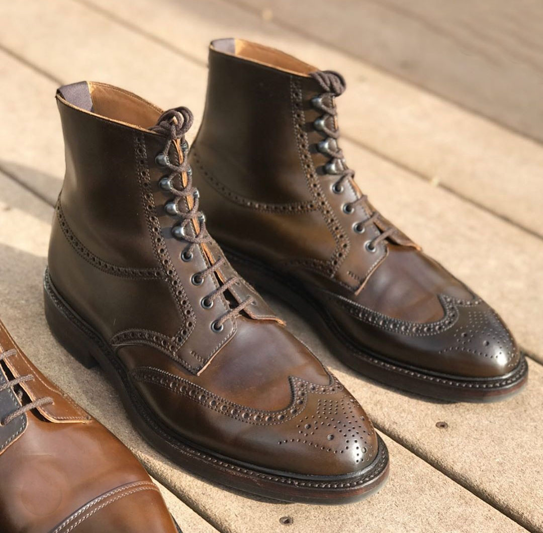 Oxfords Men's Handmade Brown Wingtip Ankle High Lace Up Leather Rangers Boot