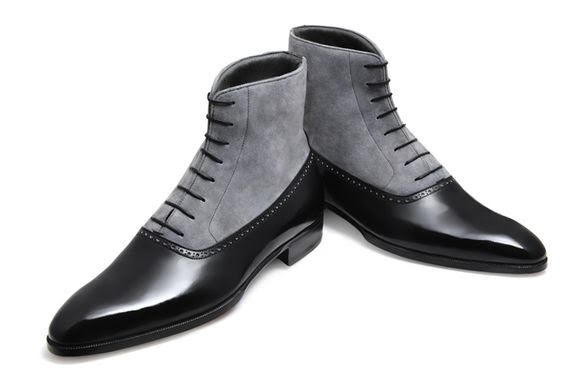 Men's Black Grey Ankle High Boot,Narrow Toe Formal Boot,Handmade Leather Suede Lace Up Boot