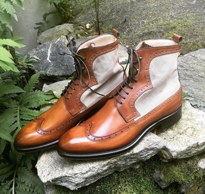 Best Trendy Handmade Brown Leather Tweed Ankle High Boot
