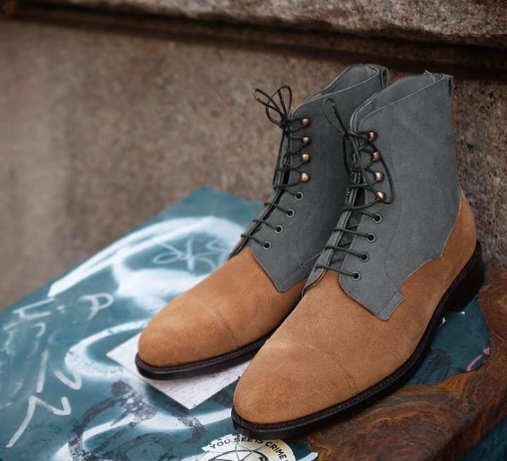 Unique Stylish Grey Brown Suede Ankle High Lace Up Boot Made On Order
