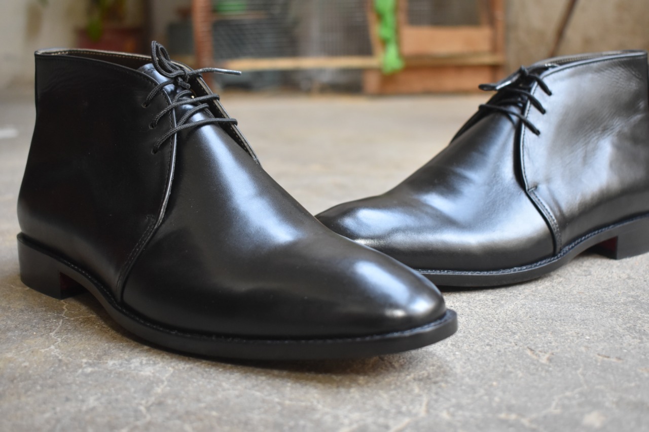 New Men's Hand Stitch Black Genuine Leather Lace Up Chukka Boot