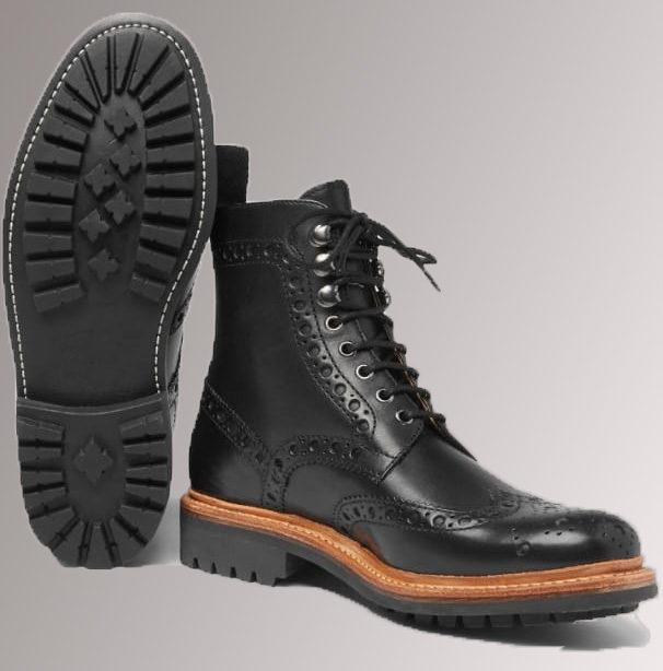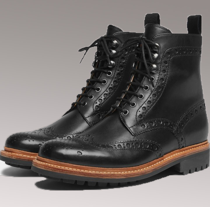 Unique Handmade Black Wingtip Lace Up Military Boot For Gentlemen
