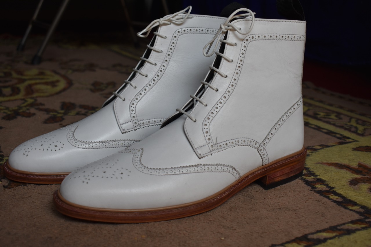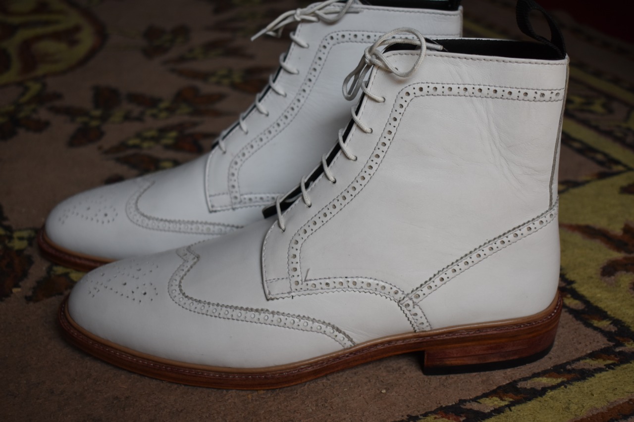 Best Western Style Oxfords White Ankle High Boot, Hand Stitch Genuine Leather Lace Up Boot