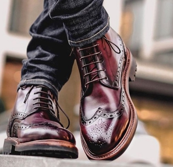 Best Men Handmade Burgundy Black Tone Leather Wingtip Lace Up Military Boot