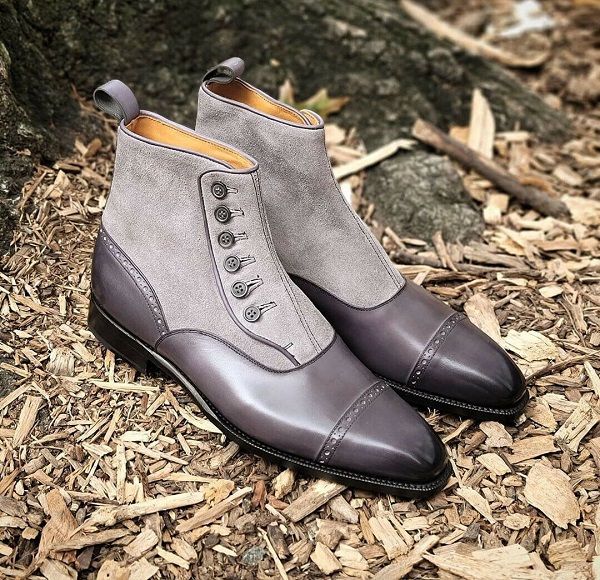 Men's Leather Suede Boots Men's Gray Button Top Ankle High Dress Boot