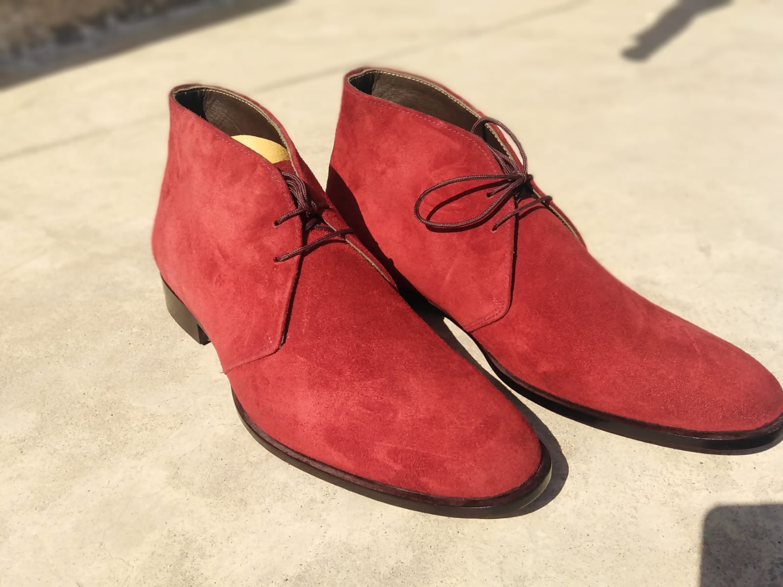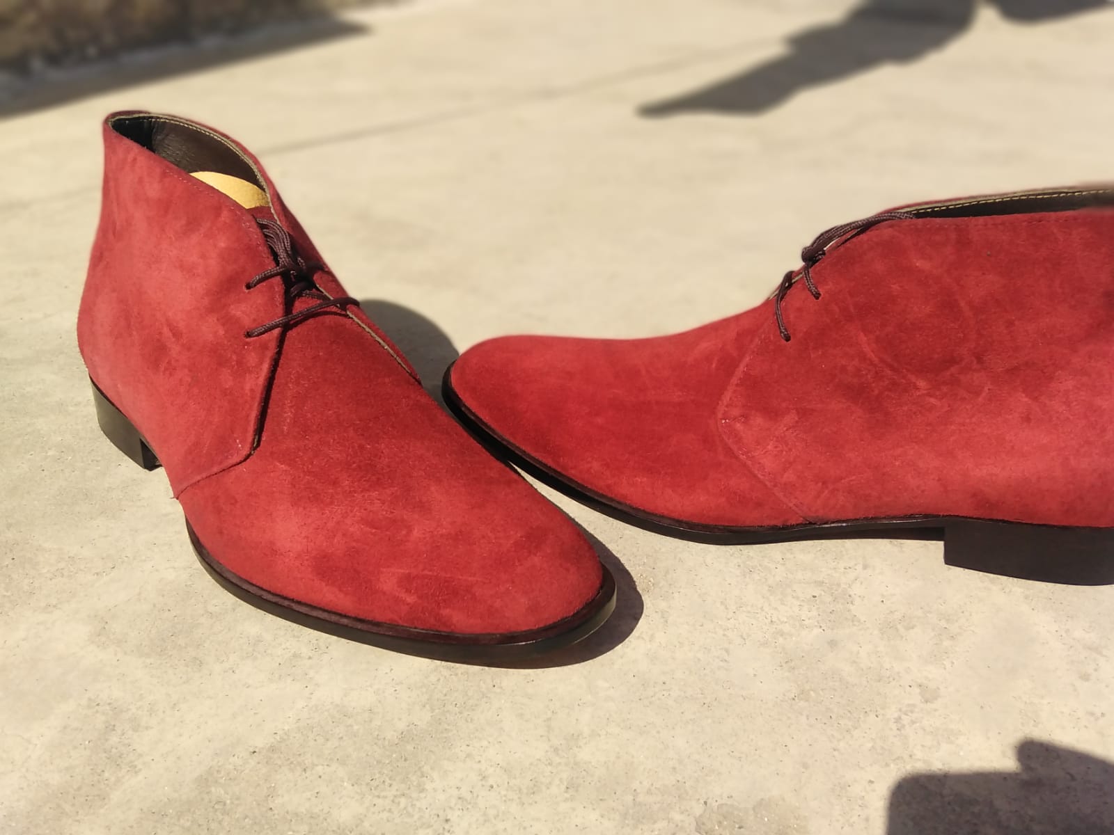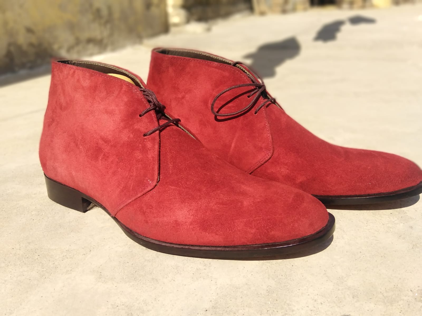Hot Sale New Hand Stitch Men's Suede Boot, Red Chukka Lace Up Boot