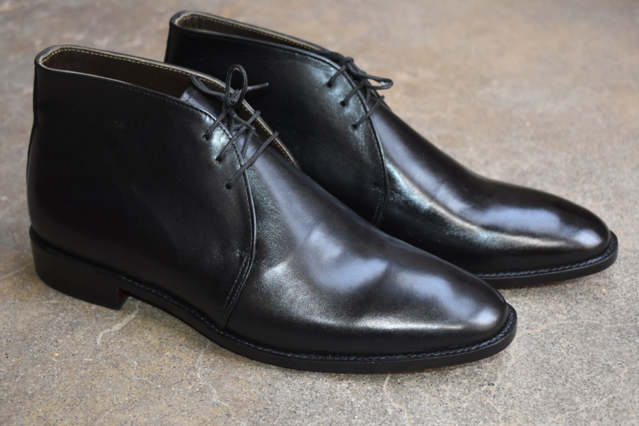 Handmade Men Black Leather Finished Chukka Designer Lace up Dress Boot