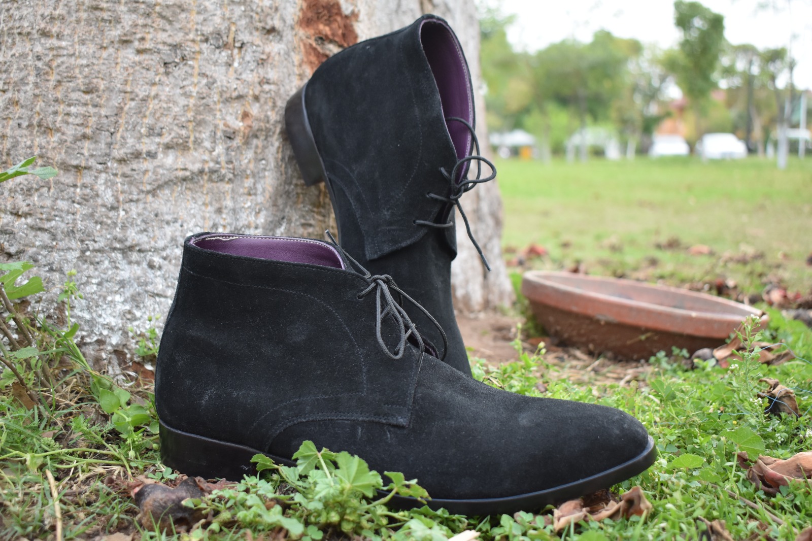 Luxury Men's Hand Stitch Black Chukka Genuine Suede Boot, Lace Up Formal Boot