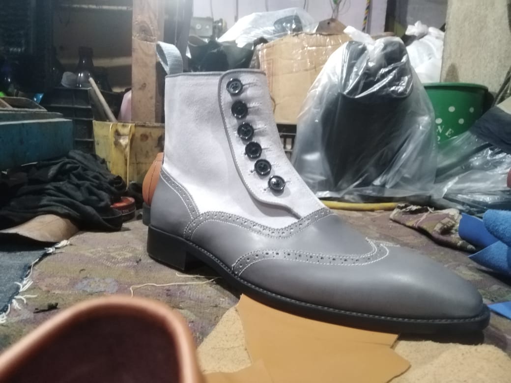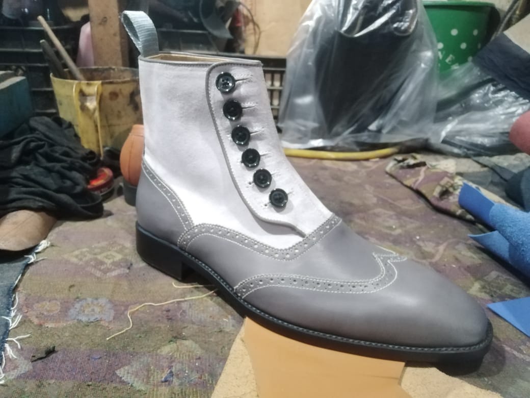 Best Adult Wear Hand Stitch Grey Leather Suede Boot, Wingtip Button Style Formal Boot