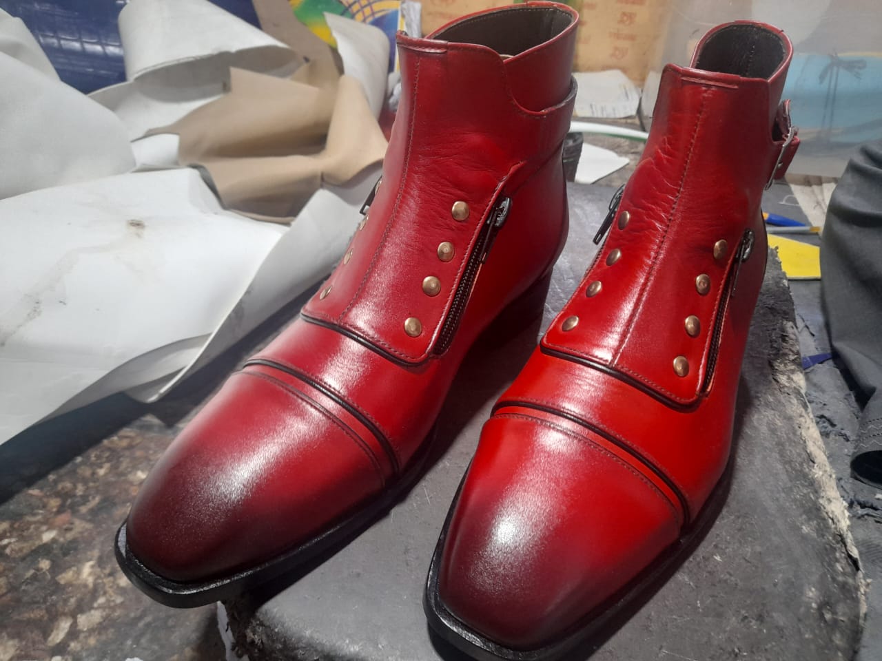 Men's Red Leather Cap Toe Fashion Zipper Fastening Handmade Boot