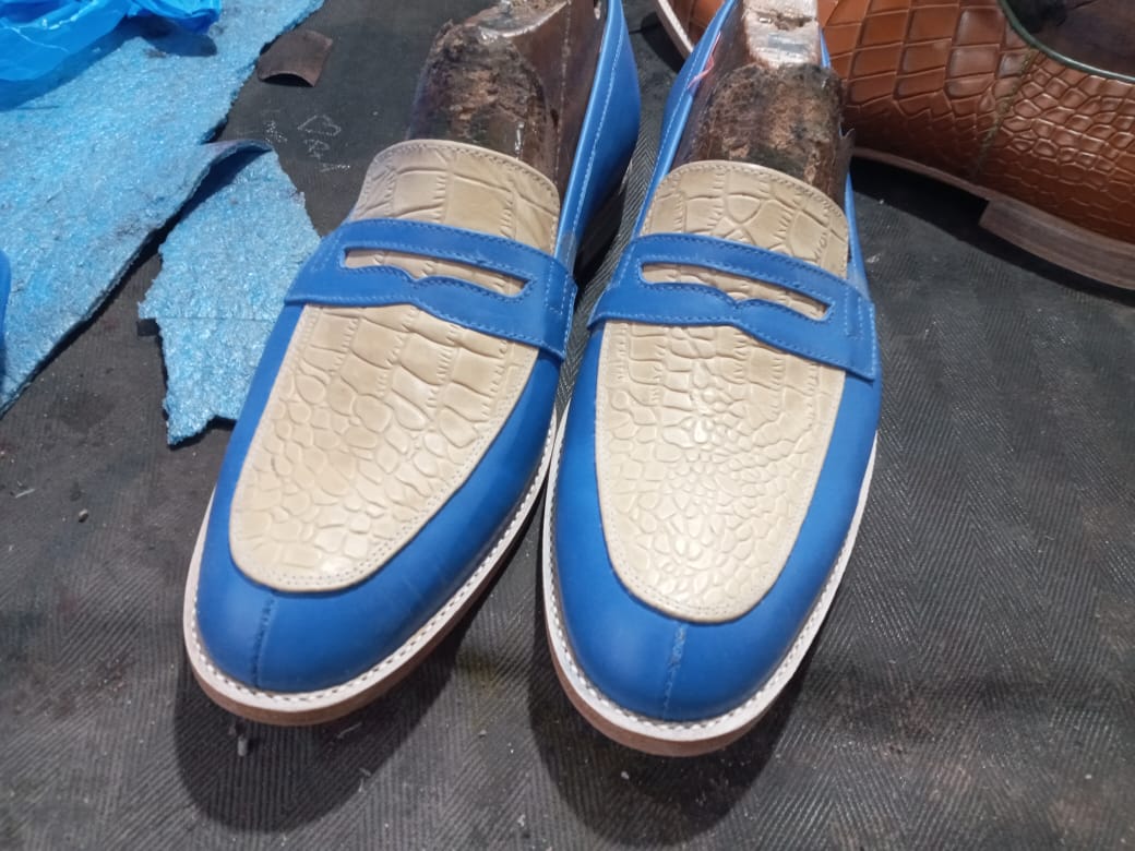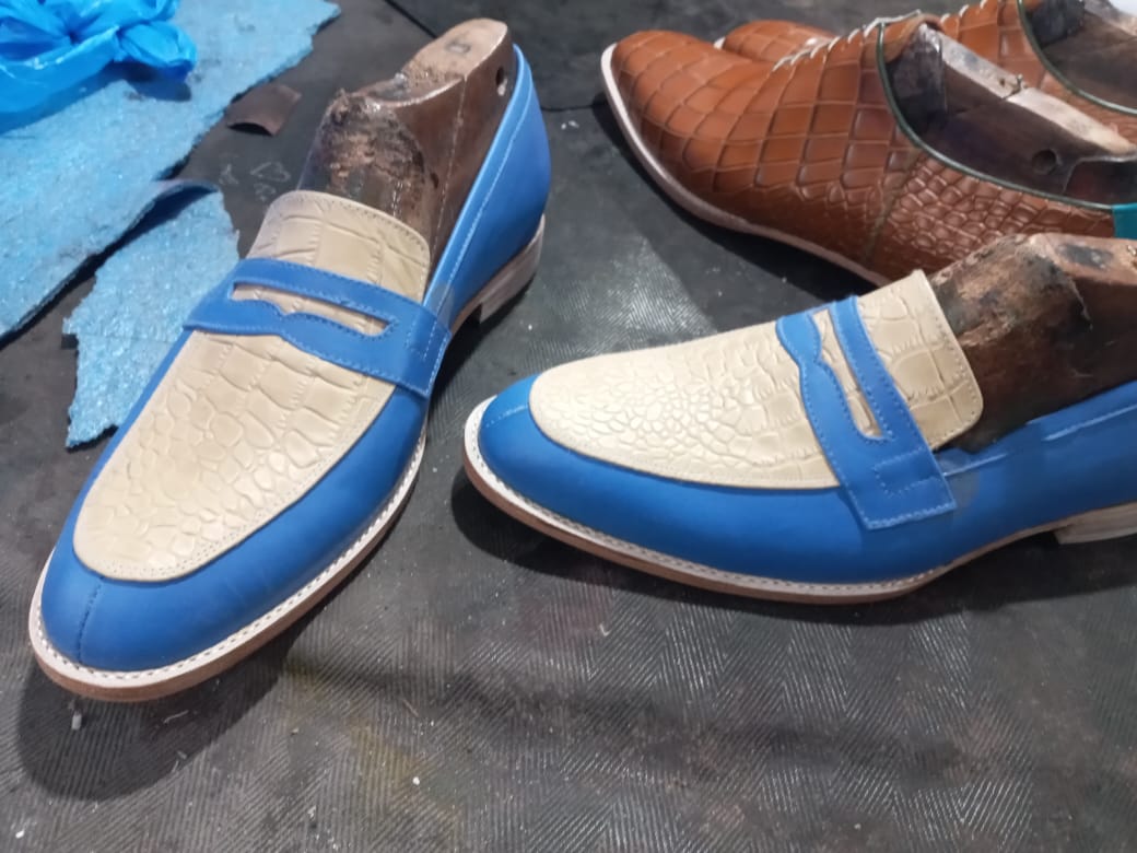 Customise Men's Two Tone Leather Handmade Moccasin Formal Shoes