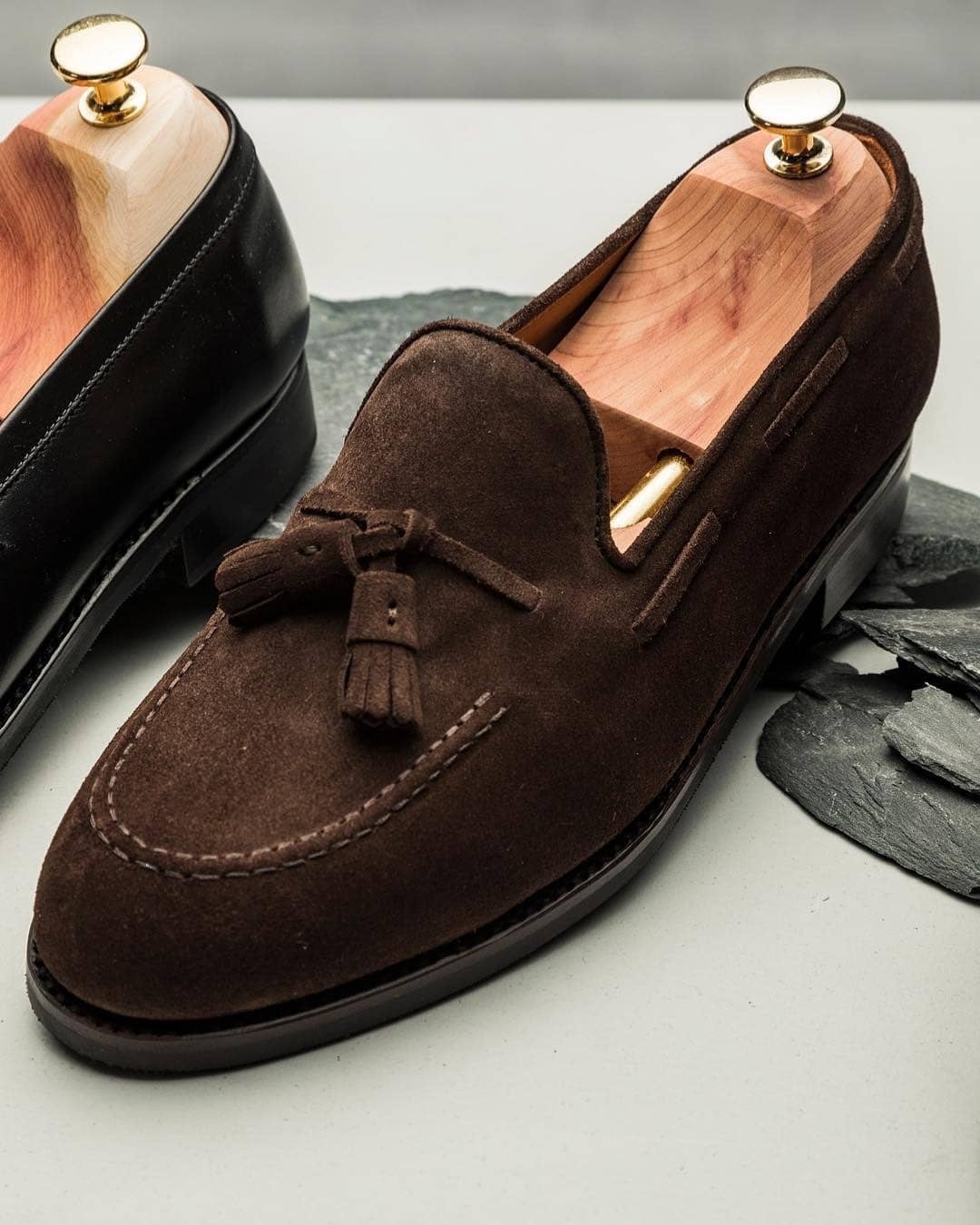 Decent Handmade Dark Brown Tassels Loafer formal Shoes In Genuine Suede For Men
