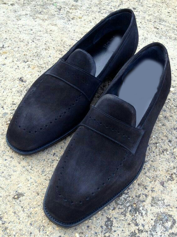 Men Handmade Dress Loafer Slips On Moccasin Navy Blue Formal Suede Shoes For Men