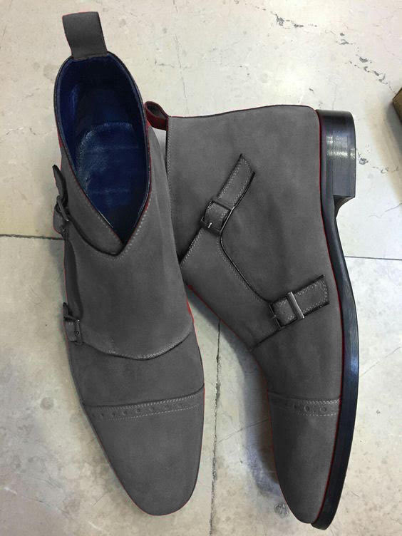 New Handmade Men's Grey Double Monk Chukka Casual Boot