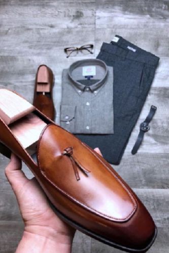 New Trends Western Style Men's Brown Leather Tassels Loafer Slips On Boat Fashion Shoes