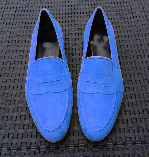 New Handmade Men Blue Casual Loafer Shoes In Suede