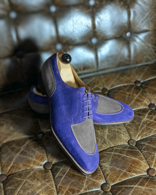 Gray Blue Combination Fashion Spilt Toe Handmade Leather Formal Lace Up Shoes