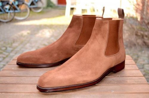 Classic Handmade Camel Brown Suede Ankle High Chelsea Adult Boot,Formal Wear Boot For Men