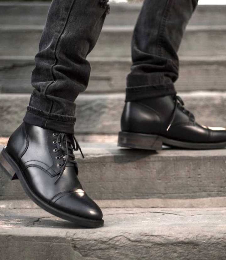 Classic Black Leather Cap Toe Ankle High Lace Up Winter Christmas Boot