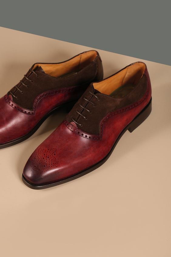 New Handmade Oxfords Burgundish Lace Up Leather Suede Party Wear Shoes,Men's Formal Shoes